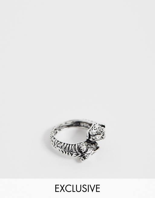 Designb Double Dragon Headed Ring In Silver Asos