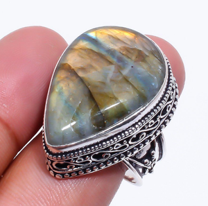 Bague Labradorite Plaquee Argent 925 T60 Us 9 Ebay